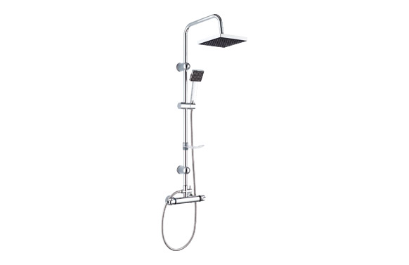 SET DE DUCHA MODELO RY-S002+V002BEXT «PONTE», CON MANDO TERMOSTATICOY ROCIADOR 20X20 EN ACERO INOX Y CROMADO Barra de ducha, rociador fijo, grifo termostático, flexo metálico de 170 cm, mango de ducha móvil,soporte y set de fijación. Barra extensible de 85 a 155 cm