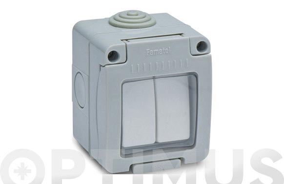 Doble conmutador 10A/250V~. IP55. 82×70 mm.