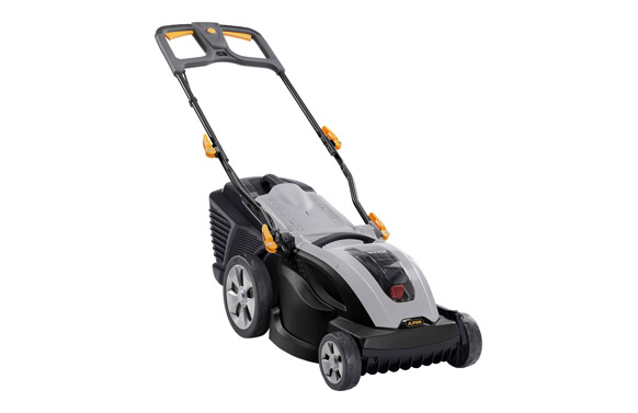 Cortacesped a bateria 48V – 4Ah Bateria y cargador incluidos Motor sin escobillas Empuje Ancho de trabajo 38 cm Altura de corte: Centralizado, 6 posiciones (25 – 75mm) Recogedor 40l.