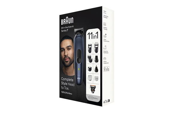 – Recortadora 11 en 1 Series 7 de Braun para afeitado de pies a cabeza: accesorios especializados para barba, nariz y orejas, recorte de pelo y rasurado masculino para todo el cuerpo.