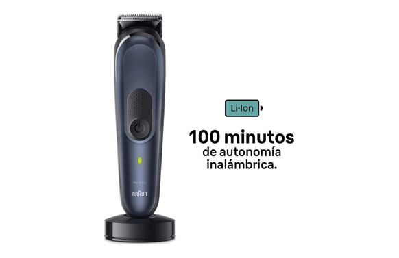 – Diseñada para durar: esta recortadora todo en uno para hombre incluye una potente batería de iones de litio que ofrece 100 minutos de autonomía inalámbrica, y es 100 % resistente al agua.