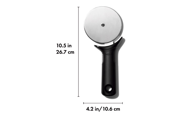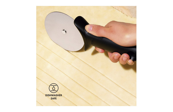 Rueda de acero inoxidable de gran tama¤o para hacer menos presi¢n. Protector de seguridad. Apto lavavajillas. Medida 20×7,5×2,5cm.
