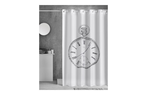 CORTINA BAÑO ESTAMPADO RELOJ – 180 X 200 CM POLIESTER
