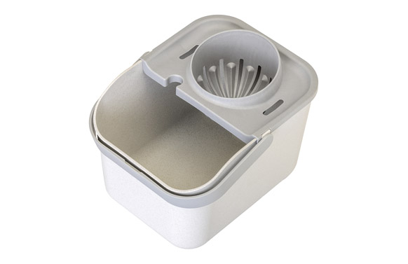 Cubo con un asa ergonómica y resistente con ranura para ocultar el tope que bloquea el giro del mango. en la parte inferior tiene un espacio para colocar la mano y facilitar el vaciado del cubo, y un pie para aumentar la estabilidad y el agarre y evitar el contacto con superficies sucias o mojadas. en su interior tiene un medidor de líquido incorporado (capacidad 8 l).. tiene una ligera inclinación en el borde de la parte delantera que actúa como abertura para facilitar el vaciado. (31x26x23). escurridor con relieve interno para facilitar el escurrido de la fregona, con dos agujeros laterales para drenar el agua y evitar que se acumule, y con un amplio diámetro. dispone de pestañas para anclarlo al cubo, fáciles de quitar. con un agujero para enganchar el palo de la fregona y mantenerlo erguido.