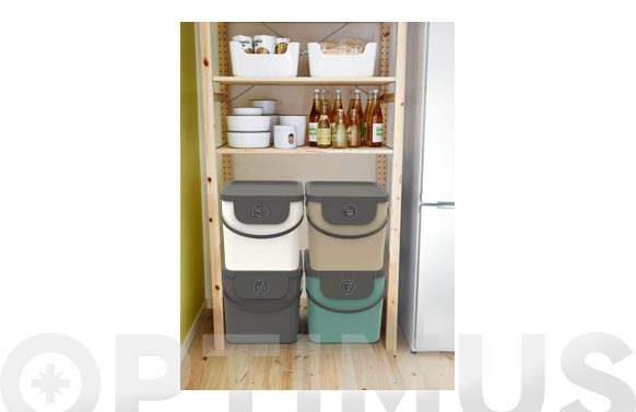 Dimensiones: 40 x 35,5 x 34 cm. Capacidad de 40 litros. Fabricado conPP reciclado. Se entrega con 5 pegatinas para la identificación y adaptar la clasificación a las regulaciones locales. Fácil de llevar gracias a las asas. Fácil de limpiar.