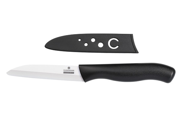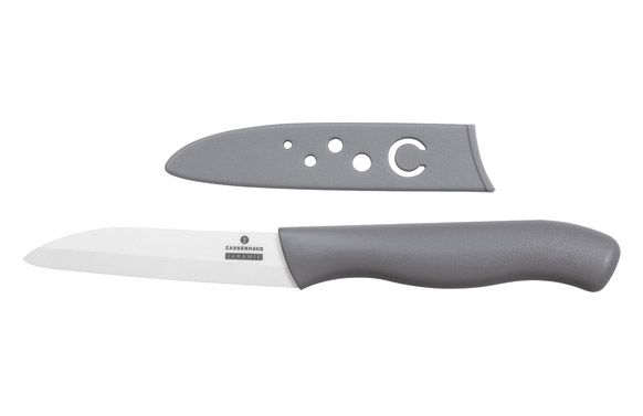CUCHILLO CERÁMICO. Ceraplus. Expositor 36 unidades. 4 colores: negro,rojo, verde y gris. Más duros que el acero, duran mucho más tiempo afilados. Mango ergonómico. Incluye funda protectora. Hoja de 7,5 cm. Longitud total de 16 cm.