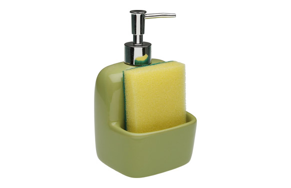 Dosificador cerámica color verde. Estropajo incluido Medidas: 17,8 x 9,4 x 10,5