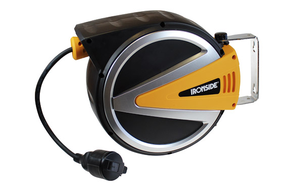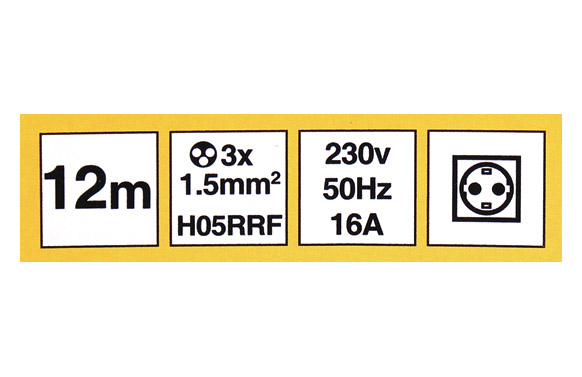 Indicado para talleres, agricultura, comercio e industria. Orientablecon soporte para pared. Con sólo tirar de él se puede detener el cabley dejarlo fijo o enrollarlo automáticamente según se desee. Cable decaucho H07RNF. Dimensiones de cable 3 x 1,5 mm. Longitud de cable: 12m.