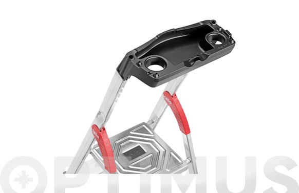 Peldaños XXL: anchos, redondeados, con ranuras antideslizantes, bordesprotegido y superficie muy profunda de 13 cm. Muy compacta tras plegarla. Bandeja superior multifuncional para herramientas, botes de pintura y pequeños objetos. Plataforma de acero galvanizado con ranuras antideslizantes. Unión larguero-peldaño robusta con remachado high-tech.Tacos antideslizantes. Cables de acero de refuerzo a partir de 5 peldaños. Resiste hasta 150 kg de carga. Material: aluminio