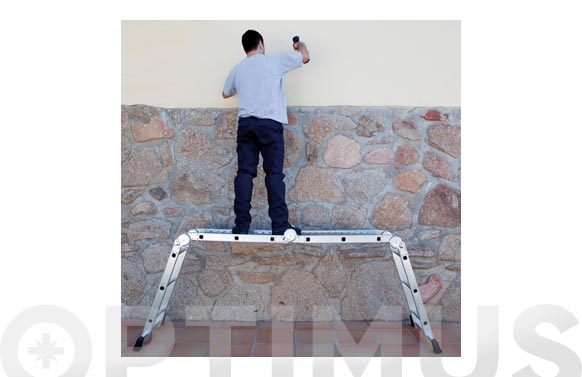 ESCALERA MULTIUSO ARTICULADA TODO ALUMINIO. BISAGRAS AUTOMATICAS. DOTADA DE JUEGO DE PLATAFORMAS DE ACERO PARA SU UTILIZACION COMO PEQUEÑO ANDAMIO O BANCO DE TRABAJO. MEDIDAS MAXIMAS: TIJERA 1,72 METROS UN SOLOTRAMO 3,46 METROS. CERTIFICACION EN-131