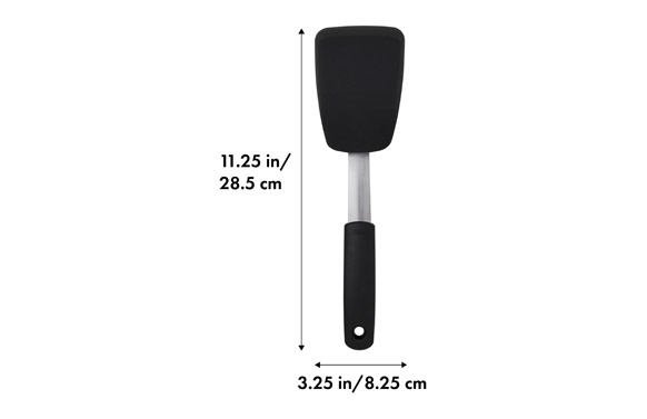 Silicona resistente a 315 º La silicona no ralla las superficies antiadherentes. Gran tama¤o para coger los alimentos enteros Mango OXO: antideslizante incluso con las manos mojadas y grueso ergon¢mico para hacer menos presi¢n. Mango con una inclinaci¢n de 45 º para no manchar en reposo y deslizar por debajo de los alimentos. Apto lavavajillas