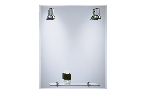 ESPEJO LUMINOSO Con estante y dos focos. 60 x 75 cm. Bombillas no incluídas. Incluye kit con escuadras y los colgadores, junto con los soportes de la repisa y el manual de montaje