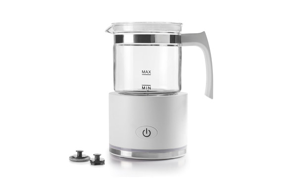 600 w, capacidad: 250 ml (calentamiento), 115 ml (espuma) produce una espuma fina en segundos, ideal para un acabado decorativo en cafés y otras infusiones. Permite calentar leche, y espumar leche caliente y fría. Jarra de cristal. Cuenta con dos batidores, uno para espumar y otro solo para calentar la leche. Apto para leches vegetales.