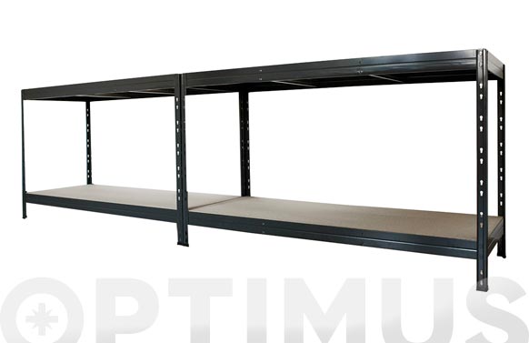 Estanteria sin tornillos de fácil montaje y alta resistencia con 4 niveles de carga, 300Kg por nivel, bandeja de madera aglomerada y estrucura en acero pintado color gris antracita anticorrosión. Dimensiones: 180X150X60cm (alto/ancho/fondo).