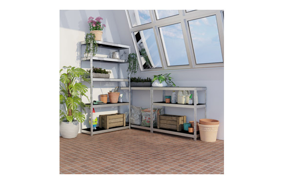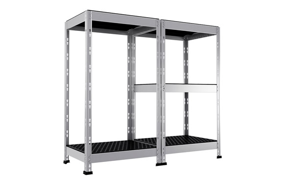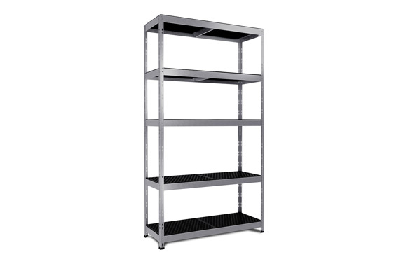 Estanteria exteriores de prolipropileno reciclado, resistentes a los rayos uva. Capacidad por nivel 100 kg. Alineación metálica anti-corrosión.