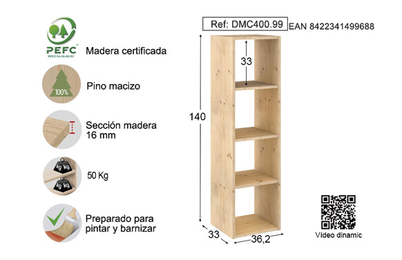 Categorías: Estanterías, Estanterías de madera natural en kit, Ordenación del hogar