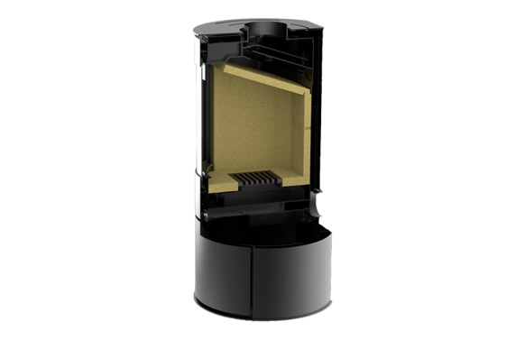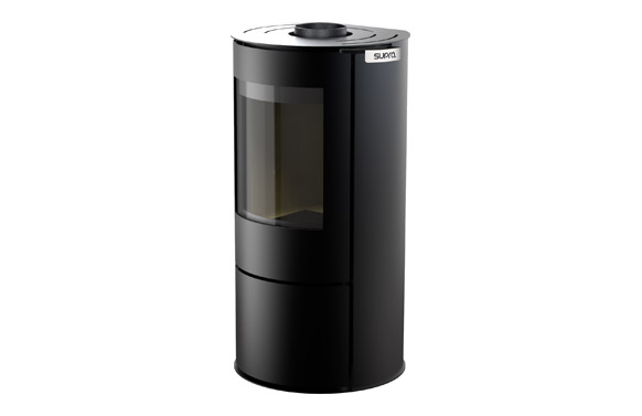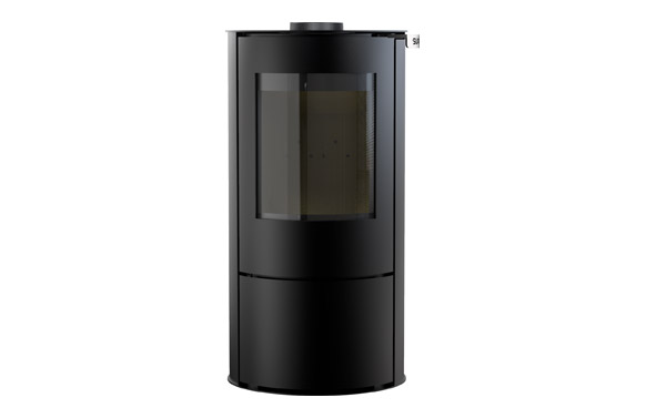Estufa de leña de acero, con asa de puerta superior para mejorar la comodidad durante la recarga. Diámetro inferior a 50cm, un dispositivo redondo que ocupa poco espacio. Sistema de cristal limpio. Rango de potencia 10-3kW, potencia nominal 6kW, visión del fuego 50cm diagonal, aparato estanco y compatible con nueva vivienda, consumo 1,74Kg/h, rendimiento 83,2%, CO 0,07%. Particulas finas (mg/nm3) 29. Diámetro salida de humos 150 mm, macho. Conexión de humos posterior, superior. Conexión aire exterior 10cm. Dimensiones (LxPxH) 50×45,9×96,9 cm. Distancia instalación trasera 30 cm, lateral 40cm a materiales combustibles. Compatible con obra nueva (aparato estanco).