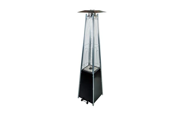 ESTUFA GAS EXTERIOR PIRAMIDE 220CM.13Kw. Encendido piezo eléctrico. 945g/h.Ruedas incluidas. Sistema antivuelco. área irradiación 20m2. Rejilla protección acero inox. Estructura aluminio y base acero lacado. Gas butano y propano. Tubo y regulador no incluidos. Altura 220cm. Bombona de 13 quilos.