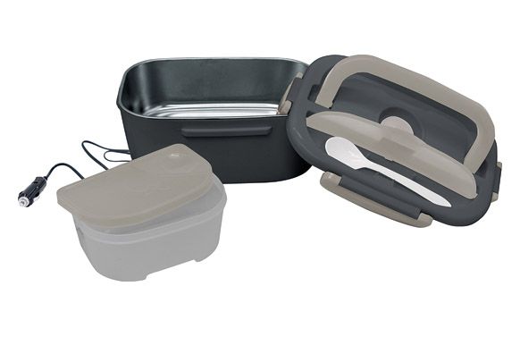 Contiene un enchufe para el coche (12V) también un indicador de temperatura para saber que esta listo. Es facil para limpiar. Su capacidad es de 450ml. En su interior tiene un recipiente que es extraible (60ml)e incluye una cuchara.