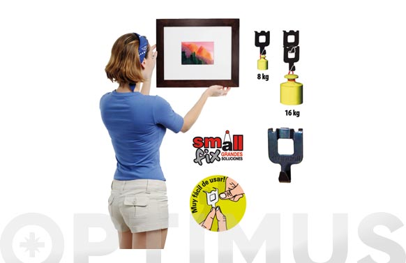 Permite colgar cuadros y otros objetos sin usar clavos ni taladros. Simplemente presionando con el dedo contra la pared queda firmemente fijado y soporta hasta 8 kg de peso. Ideal para paredes de yeso, maderasblandas y pladures