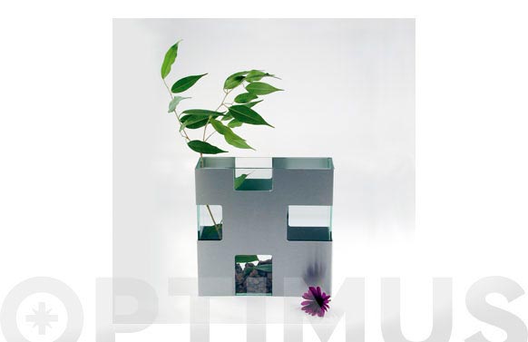 FLORERO VIDRIO-ALUMINIO – 10,5 X 10,5 X 28