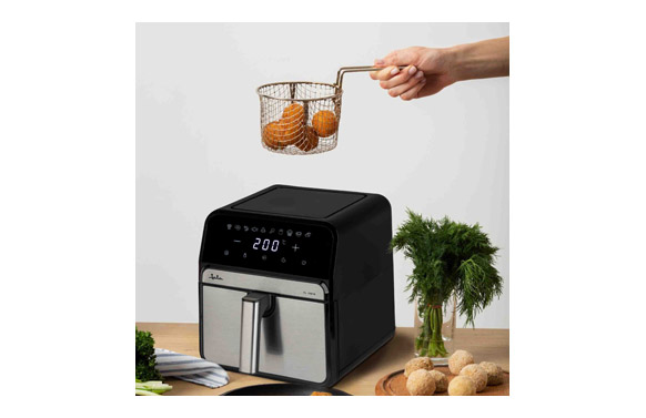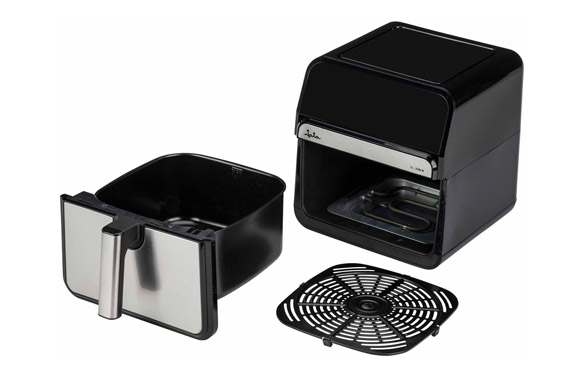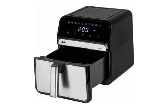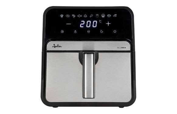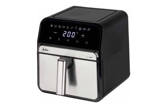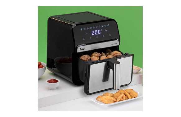 2100 W. Voltaje 230 V. Capacidad 8 L. Cocina sin aceite. Temperatura constante por circulación rápida de aire. Doble resistencia (arriba y abajo) para mejor distribución de calor y ahorro de tiempo. Gran panel de control digital. Botón encendido/apagado. 10 programas de cocinado pre-configurados. Selector tiempo/temperatura. Cestillo de gran capacidad 27,3×26,4×13,1 cm. Control de temperatura ajustable 200ºC max. Cocina con 80% menos de grasa. Cestillo antiadherente con asa. Temporizado de 60 minutos. Base antideslizante. 29,5×41,5×33 cm