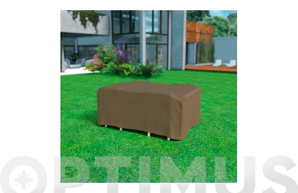 FUNDA MESA RECTANGULAR + 4 SILLAS. Impermeable y ajustable mediante una cuerda situada en el interior. Transpirable y con tratamiento anti-UV. 90x225x145 cm.