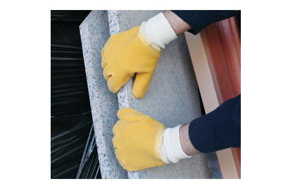 Guante de algodón recubierto de látex rugoso. Para industria del vidrio. Cerámicas. Manipulación de plásticos resbaladizos y hojalata. Construcción. Industria pesquera. Con forro jersey muy confortable, buen comportamiento en frío. Acabado rugoso para un agarre firme de piezas resbaladizas, secas o mojadas. Fiable y económico a largo plazo. Versióneconómica, más rugosa y más gruesa. Protección moderada frente a pequeños cortes gracias al látex rugoso. Puño elástico de ajuste.