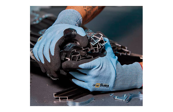 Guante con alta resistencia al corte que incorpora la fibra textil K-rock®, la nueva tecnología de corte de Juba, con fibra de vidrio e hilode acero, recubierto de nitrilo foam arenoso en la palma. Refuerzo entre el pulgar y el índice que aporta mayor resistencia al desgaste y la rotura. Buen agarre en ambientes secos, húmedos y aceitados. Excelente resistencia a la abrasión. Mayor durabilidad. Apto para uso de dispositivos táctiles.