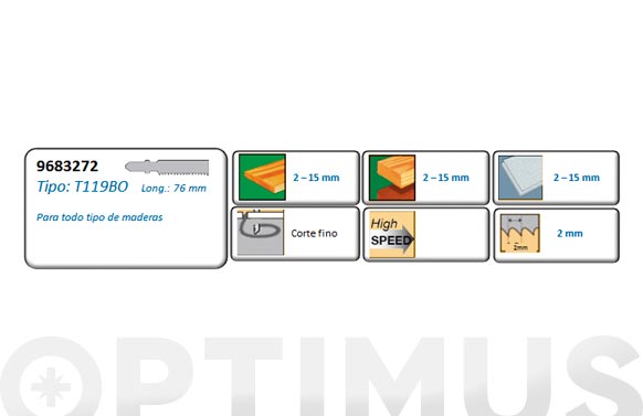 SEPARACIÓN DE LOS DIENTES: 2 MM. TIPO BIM, M51, TPI 13 PARA MADERA DETODO TIPO, LAMINADAS Y CONTRACHAPADAS