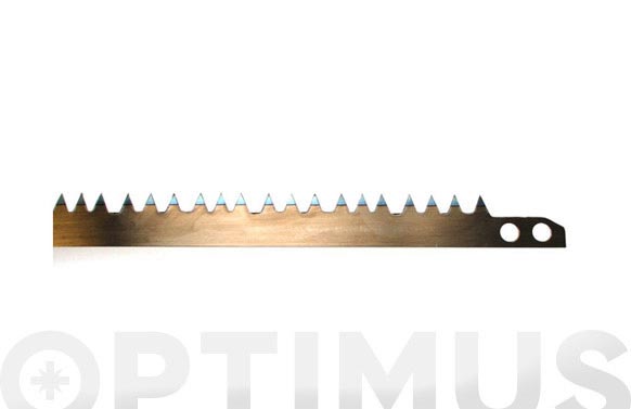 Hoja de sierra con diente normal y puntas endurecidas por sistema de inducción a alta frecuencia técnicamente calibrada. Dientes terminadosen punta y triscados en forma alterna y número. Indicado para madera seca. Para arco de sierra referencia 9685766