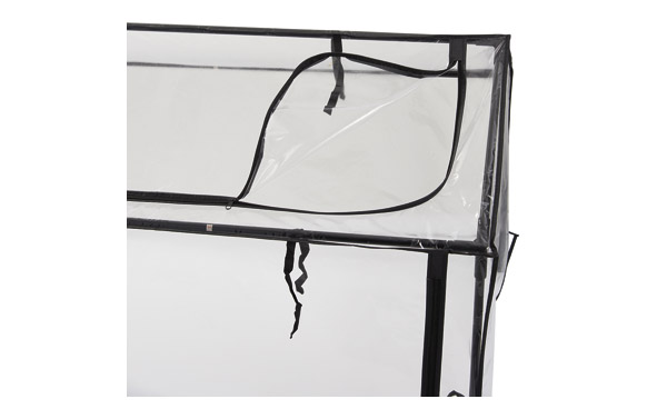 Tamaño H60xW120xD80 Con gran abertura en el lateral y en la parte superior. Tubo de acero pintado en polvo Ø 16 mm Cubierta de PVC de 0,09 mm Incl. 4 herrajes de metal