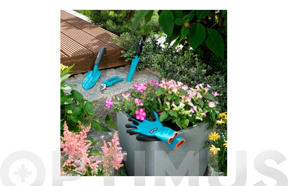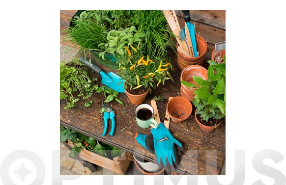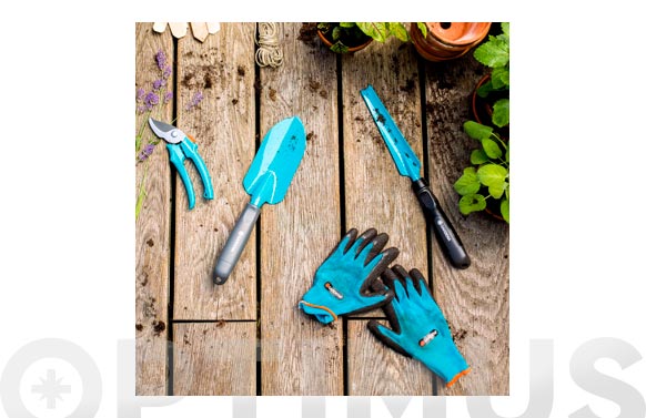 Equipamiento Basico herramientas Para plantar y trasplantar, cortar flores y hierbas Contiene; 8950, 8935, 8754, 206. El Set Básico de Herramientas de GARDENA es el set ideal para empezar con los cuidados básicos de tu jardín. Este práctico set de inicio incluye una palita, unagubia, unas tijeras de jardín y un par de guantes. Perfecto para plantar y trasplantar, cortar flores y hierbas.