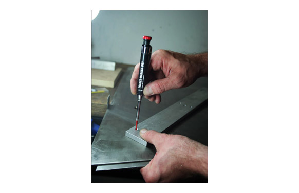 Marcador de grafito automático, punta fina superalargada de 45 mm. Puede usarse con minas de color en superficies claras u oscuras (no incluidas). Perfecto para trazar líneas finas, especialmente en el sector metalúrgico – permiten un marcado que brilla durante el corte y la soldadura.