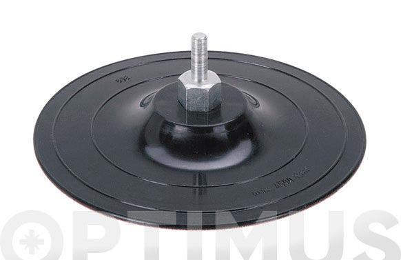1 plato abrasivo adhesivo para taladro. Superficie con sistema adherente de fijación textil. Diámetro ø 125 mm. Vástago redondo ø 8 mm.