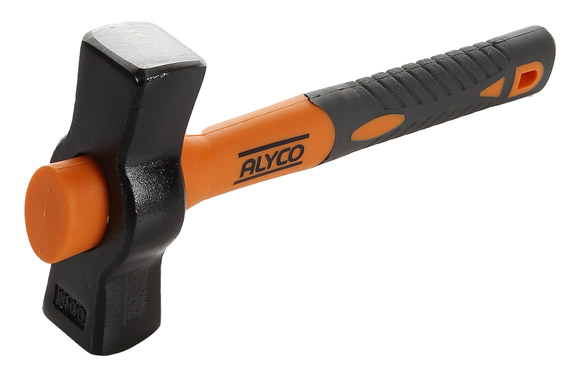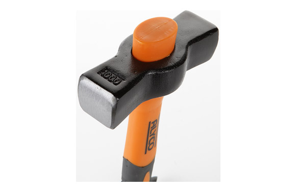 Maceta de albañil con mango ergonómico de fibra de vidrio bicomponente y fijación de la cabeza por ojo cónico. La cabeza de acero al carbono con doble superficie de golpeo. Dispone de agujero para colgarlo.