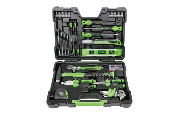 Contiene: 1 alicate universal de 180mm 1 alicate de punta alargada de 160mm 1 llave inglesa de 200mm 1 cinta métrica 3m 1 martillo de 300g 1 set de 9 llaves allen cortas: 1.5, 2, 2.5, 3, 4, 5, 6, 8, 10mm 1 destornillador plano SL6x100 1 destornillador Phillips PH2x100 1 destornillador con soporte para puntas imantado 4 destornilladores de precisión: Plano: SL2.5×50,SL3x50 Estrella: PH000x50,PH00x50 4 llaves fijas: 6×7, 8×9, 10×11, 12x13mm 1 nivel de aluminio 23cm 20 puntas de 6mm Plano: SL3, SL4, SL5, SL5.5, SL6 Estrella: PH0, PH1, PH2x2, PH3 Estrella doble: PZ0, PZ1, PZ2x2, PZ3 Torx: T10, T15, T20, T25, T30 1 cúter profesional 18mm 10 cuchillas de recambio para cúter 1 caja con 20 conectores de terminales