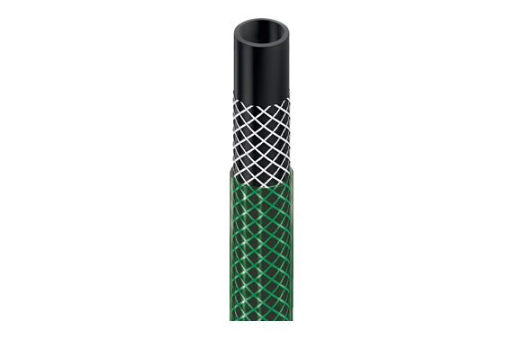 Manguera de 3 capas, refuerzo cruzado de poliéster. Resistente a los rayos UV. Parte interna resistente a las algas. Presión de rotura 20 bar. Rango de temperaturas de funcionamiento −10 / + 50 ° С.