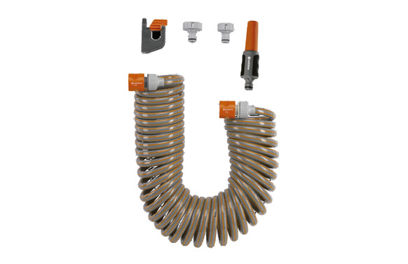 El juego de manguera flexible es la solución práctica para regar plantas en balcones, patios o jardines pequeños. La manguera se monta en pared. Gracias a su muelle, la manguera vuelve sola a su forma inicial después del uso. Se elimina así la necesidad de desenrollar y enrollar de nuevo la manguera. La manguera tiene una longitud de 10 m y es ideal para regar plantas en áreas reducidas. La pistola de riego incluida se adapta bien a la mano, el caudal de agua se puede ajustar en continuo y se puede utilizar el gatillo si se desea. El juego de manguera flexible GARDENA es el sistema práctico y completo para regar pequeños jardines paradisíacos. Con lanza multichorro (ref. 8114), machos para grifo con rosca (ref. 901 y 902).