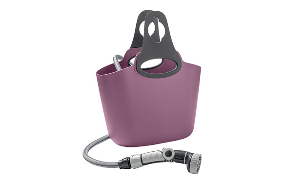 Bolsa con manguera 25 m. Aquago Bunny, extensible y reparable para elriego. Color lila