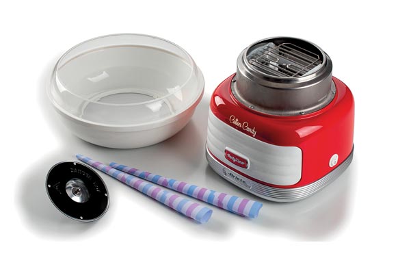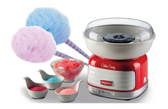 Máquina de algodón de azúcar de diseño retro de los años 50. Podrás elavorar un delicioso algodón de azúcar en muchos sabores diferentes. Potencia: 500 W. Funciona con azúcar y caramelos duros (a trocitos). Fácil de usar. Incluye 2 conos de plástico y cuchara de medición. Desmontable y fácil de limpiar.