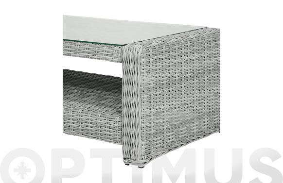 Estructura de aluminio recubierta con ratán sintético redondo color gris/arena, sobre de cristal. 111 x 56 x h41 cm. Venta en kit.