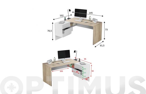 MESA ESCRITORIO C/CAJONERA REVERSIBLE BLANCO/ROBL