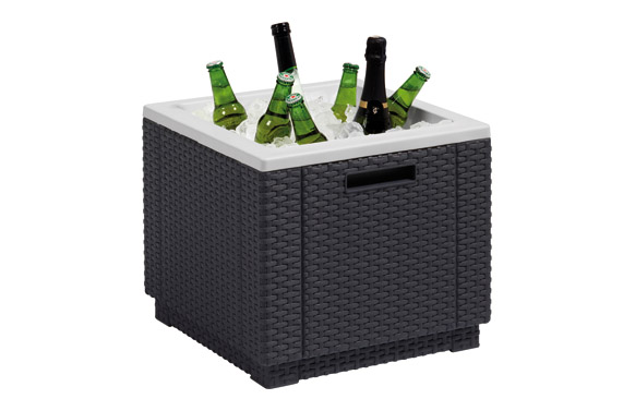 Estructura de ratán de resina color gris antracita, termo con 40 L decapacidad. 42 x 42 x 41 cm.