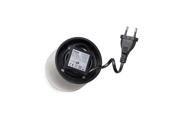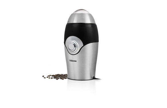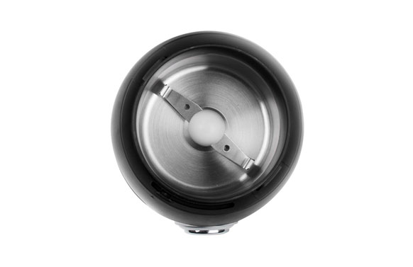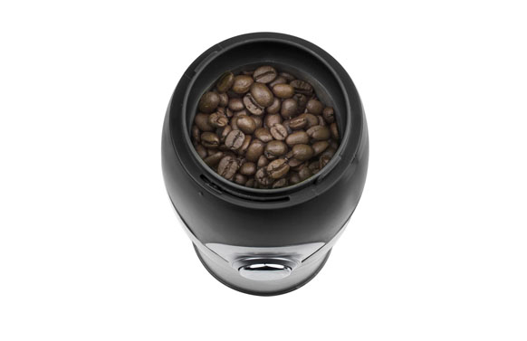 Molinillo de café de acero inoxidable con un diseño de estilo años 50. Se pueden moler hasta 70 gramos de café, lo que equivale a 10 tazas de café.