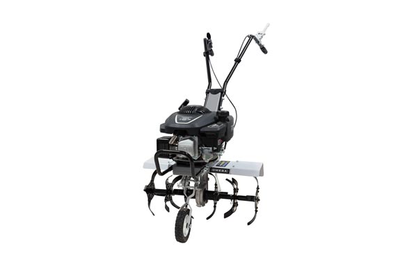 MOTOAZADA A GASOLINA ‘LE MANS 150’. Motor de 4T, 150 cc, 3,5 hp. Ancho de trabajo 36-59 cm. 1 marcha. 6 fresas y penetración en tierra de 26 cm. Rueda de transporte delantera.