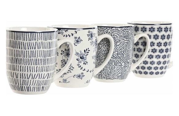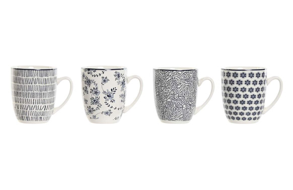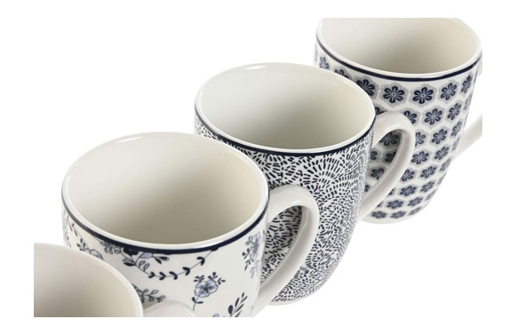 MUG PORCELANA DECORADO SURTIDO AZUL SET 4 UDS