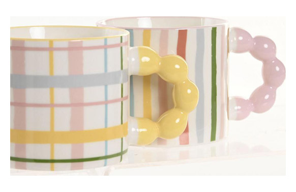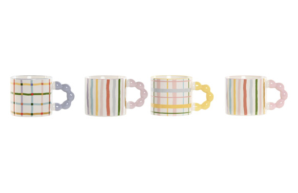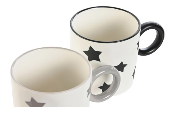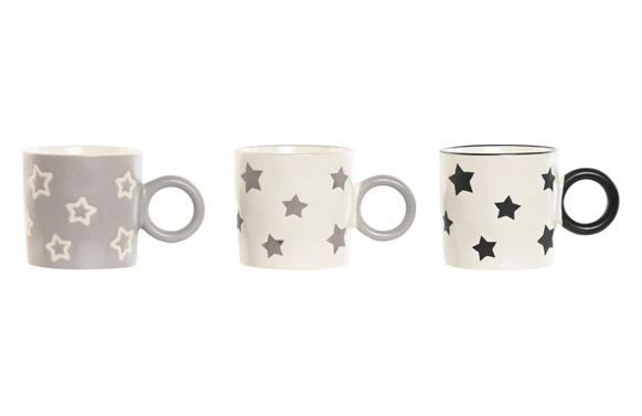 Taza capacidad 340 ml, porcelana, surtido dibujo estrellas, apto para lavavajillas y microondas.