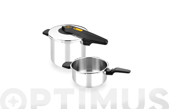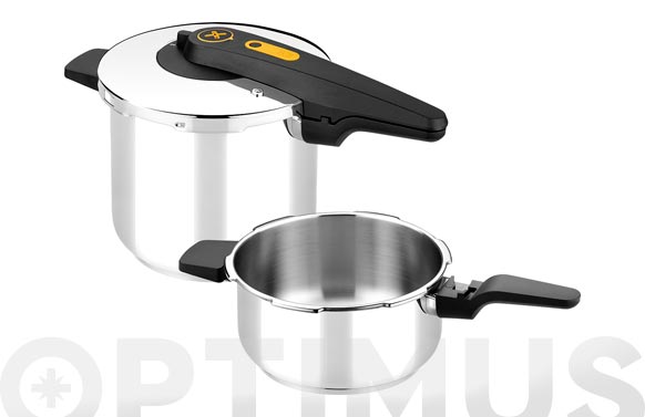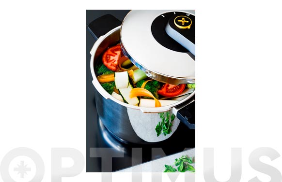 Excellent te da la posibilidad de cocinar en tiempo record una posibilidad infinita de alimentos y recetas. Reduce hasta un 70% de tiempo yahorra energía de forma respecto la cocción tradicional. Dos niveles de presión para cocina rápida y súper rápida. Triple fondo difusor FullInduction. Salida del vapor vertical. 4 sistemas de seguridad. Diseño llamativo. Manejo suave e intuitivo. Normativa CE. Cuerpo: Acero inoxidable 18/10. Pomo: Baquelita termo resistente.