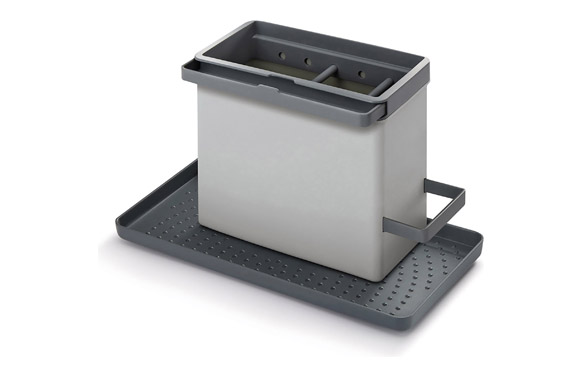 Para colocar ordenadamente todos los utensilios de limpieza en un único sitio. Modular: puede configurarse de múltiples maneras. Con 2 rieles retráctiles para paños y esponjas. Bandeja antigoteo con pies antideslizantes. Unidad central plástico ABS. Desmontable para una cómoda limpieza.